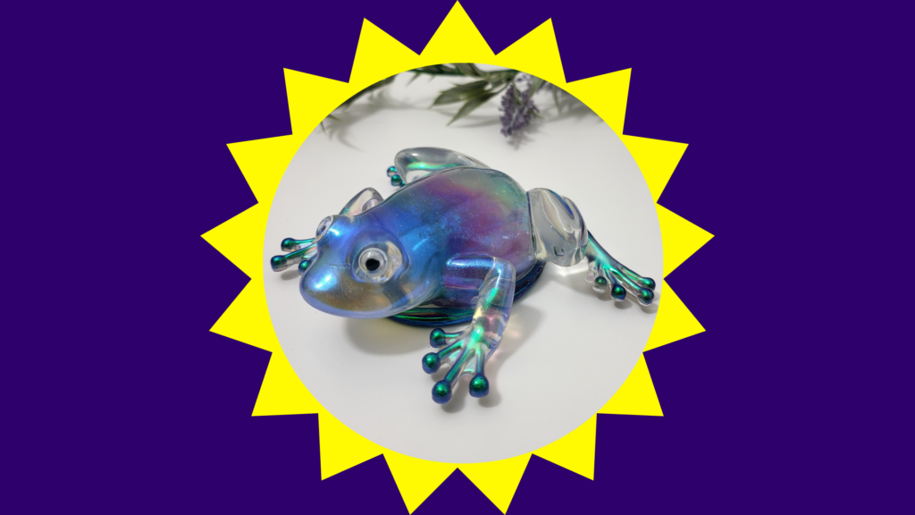 For this week’s Froggy Friday, we set out to bring the ethereal glow of the Aurora Borealis to our favourite amphibian. The idea of combining resin art with the natural wonder of the northern lights was just too exciting to pass up. Think luminous greens, blues, and purples swirling together to create a celestial masterpiece—on a frog!