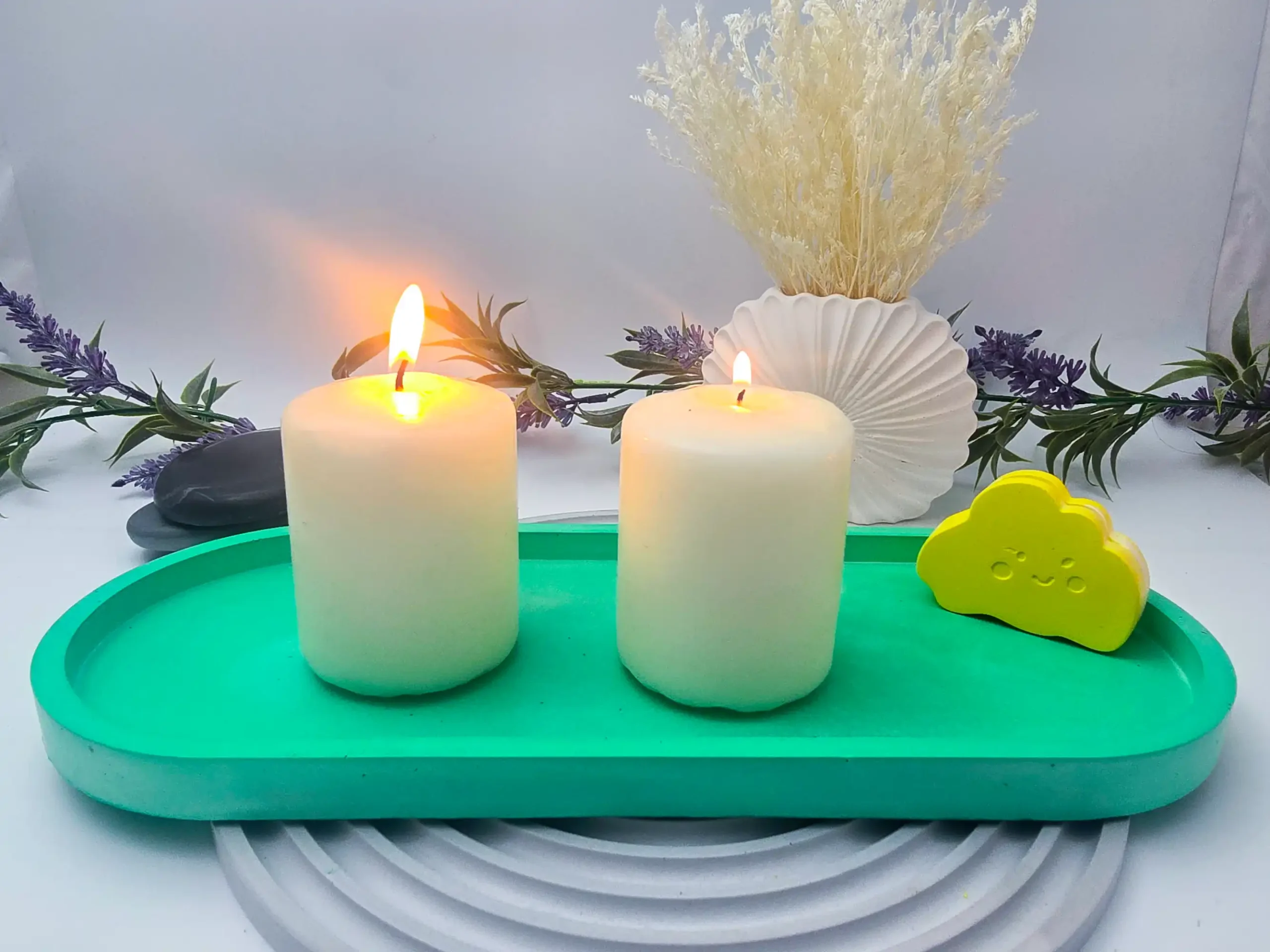 - Each piece is hand-poured: tiny variations and light marbling can happen and are normal