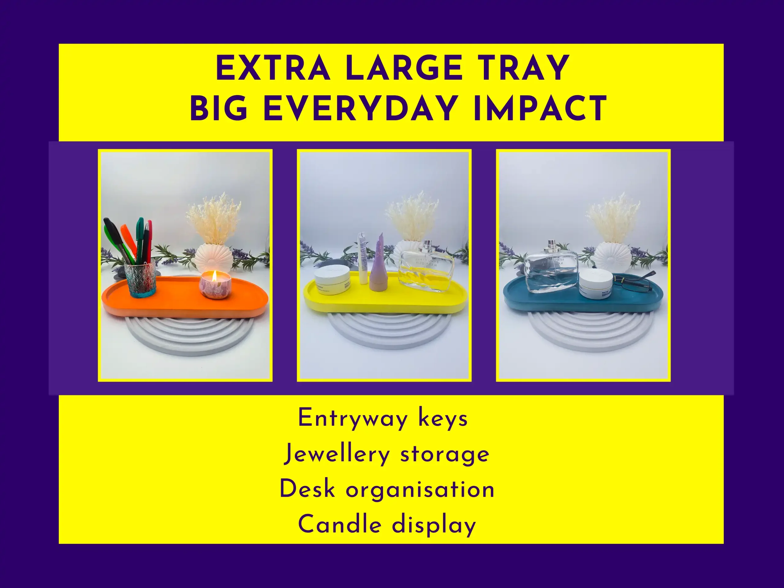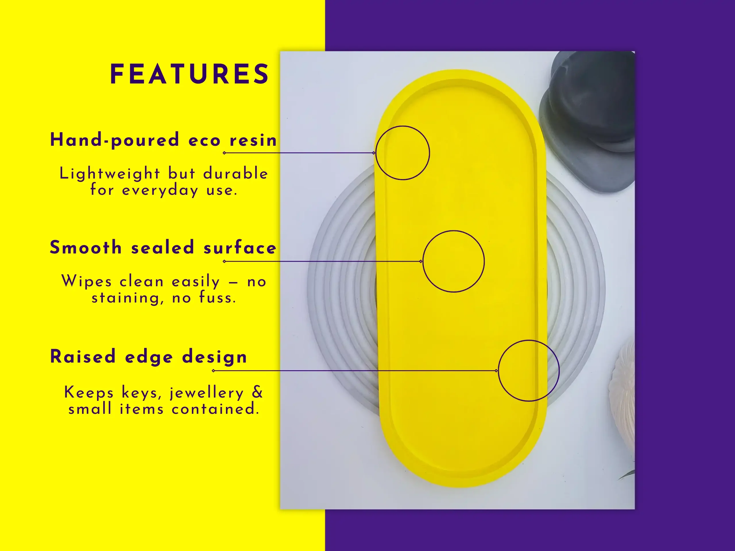 This large oval tray is hand-poured using AquaCast eco resin, sealed for extra protection, and finished with cork feet to stop slips and scratches. Minimal shape, loads of uses: catchall tray, vanity tray, bedside tray, desk organiser, or a simple base for styling bits around the house.