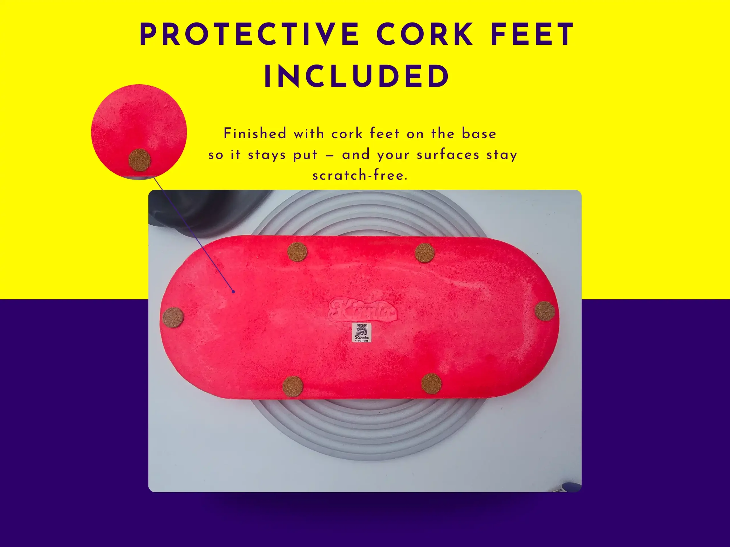 - Cork feet fitted (surface-friendly + anti-slip)