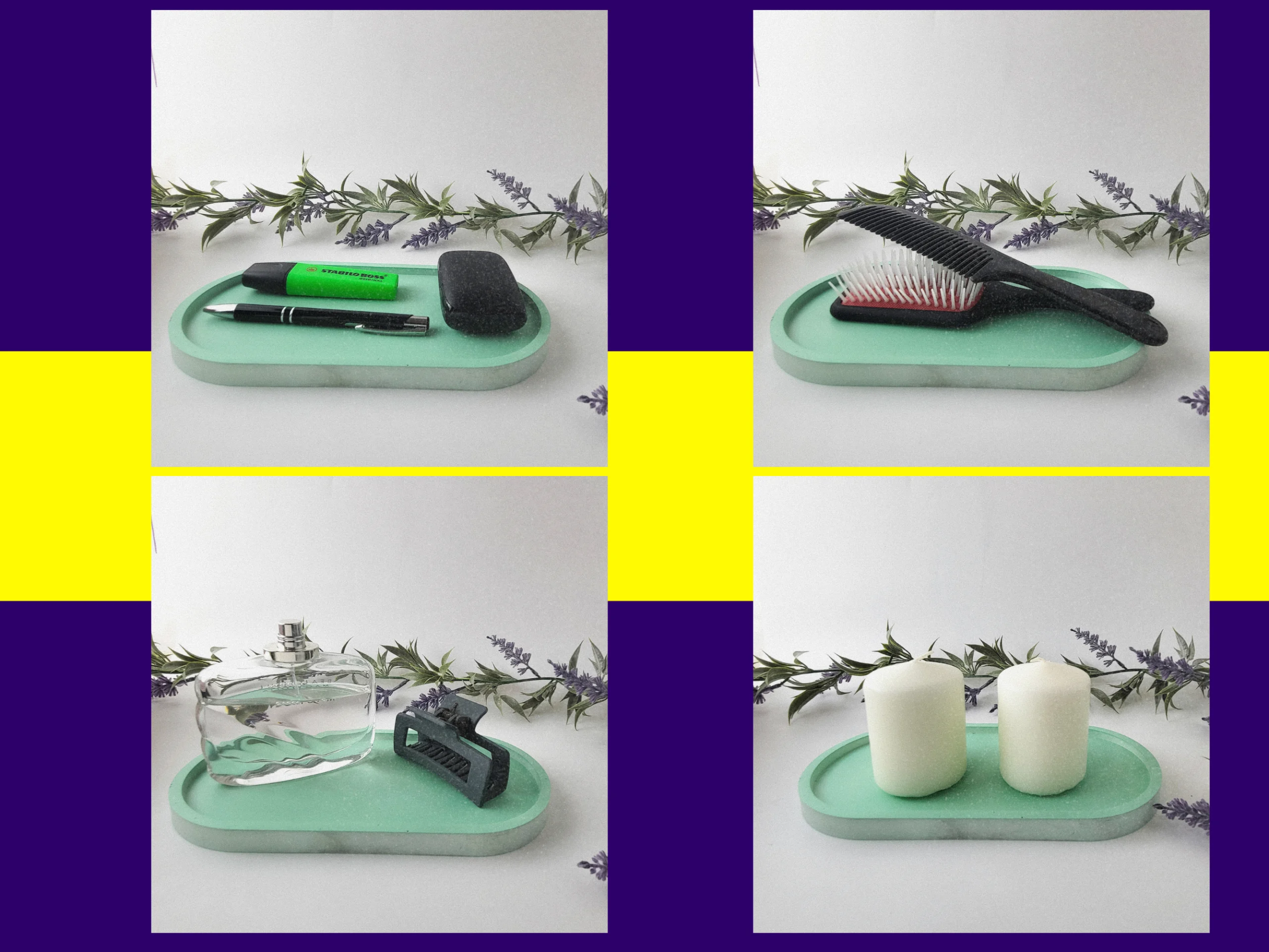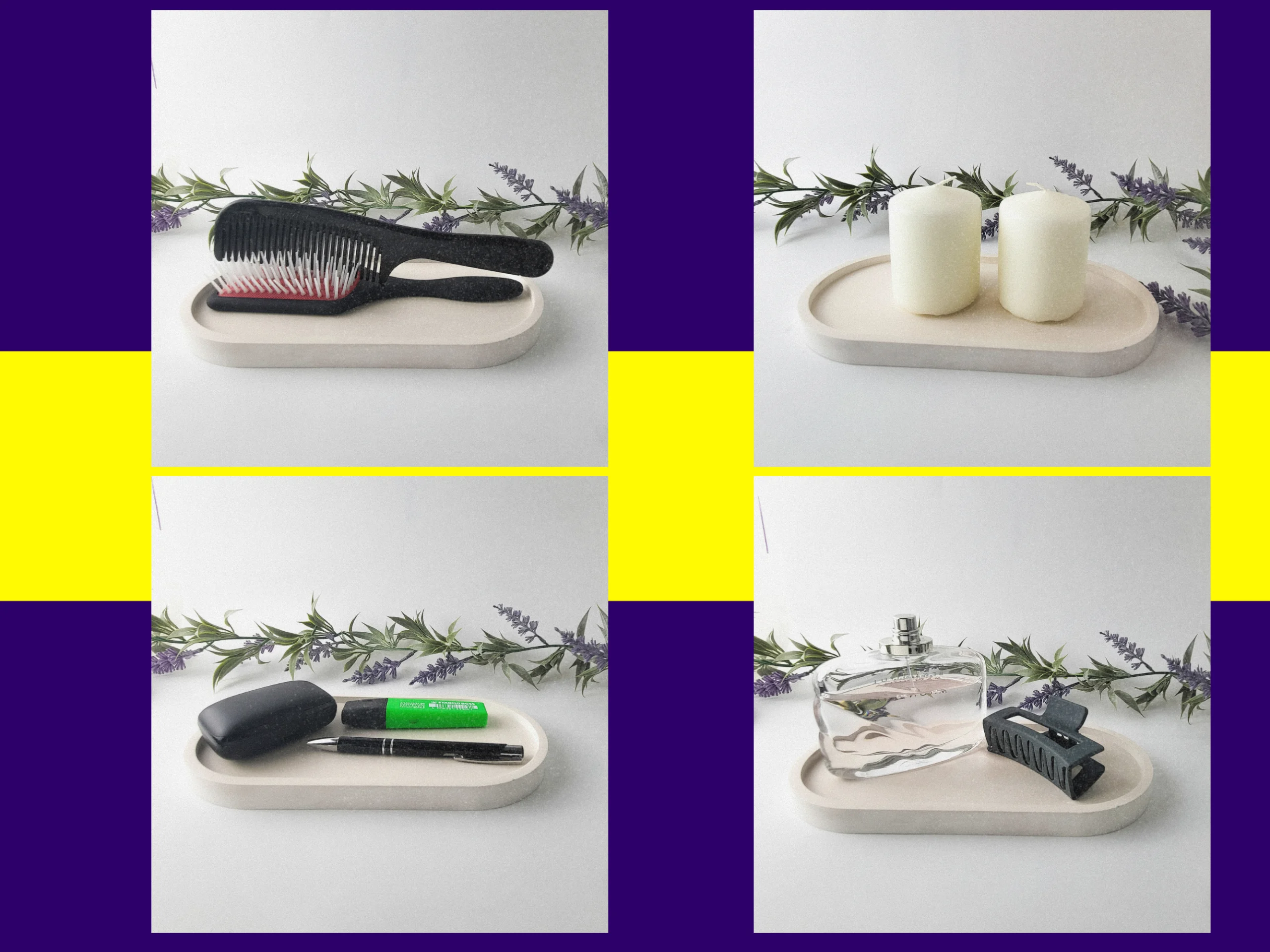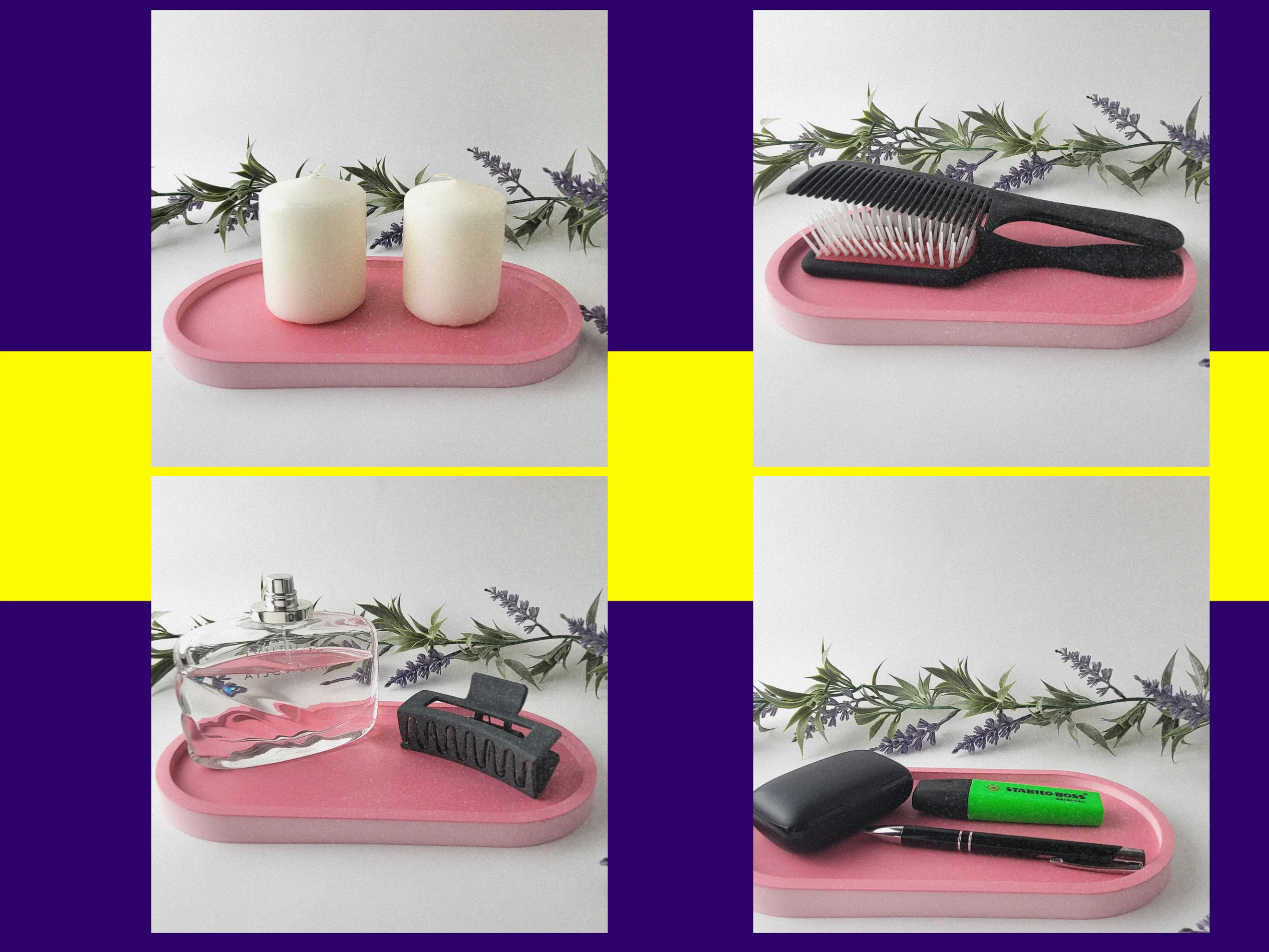 This large oval tray is hand-poured using AquaCast eco resin, sealed for extra protection, and finished with cork feet to stop slips and scratches. Minimal shape, loads of uses: catchall tray, vanity tray, bedside tray, desk organiser, or a simple base for styling bits around the house.