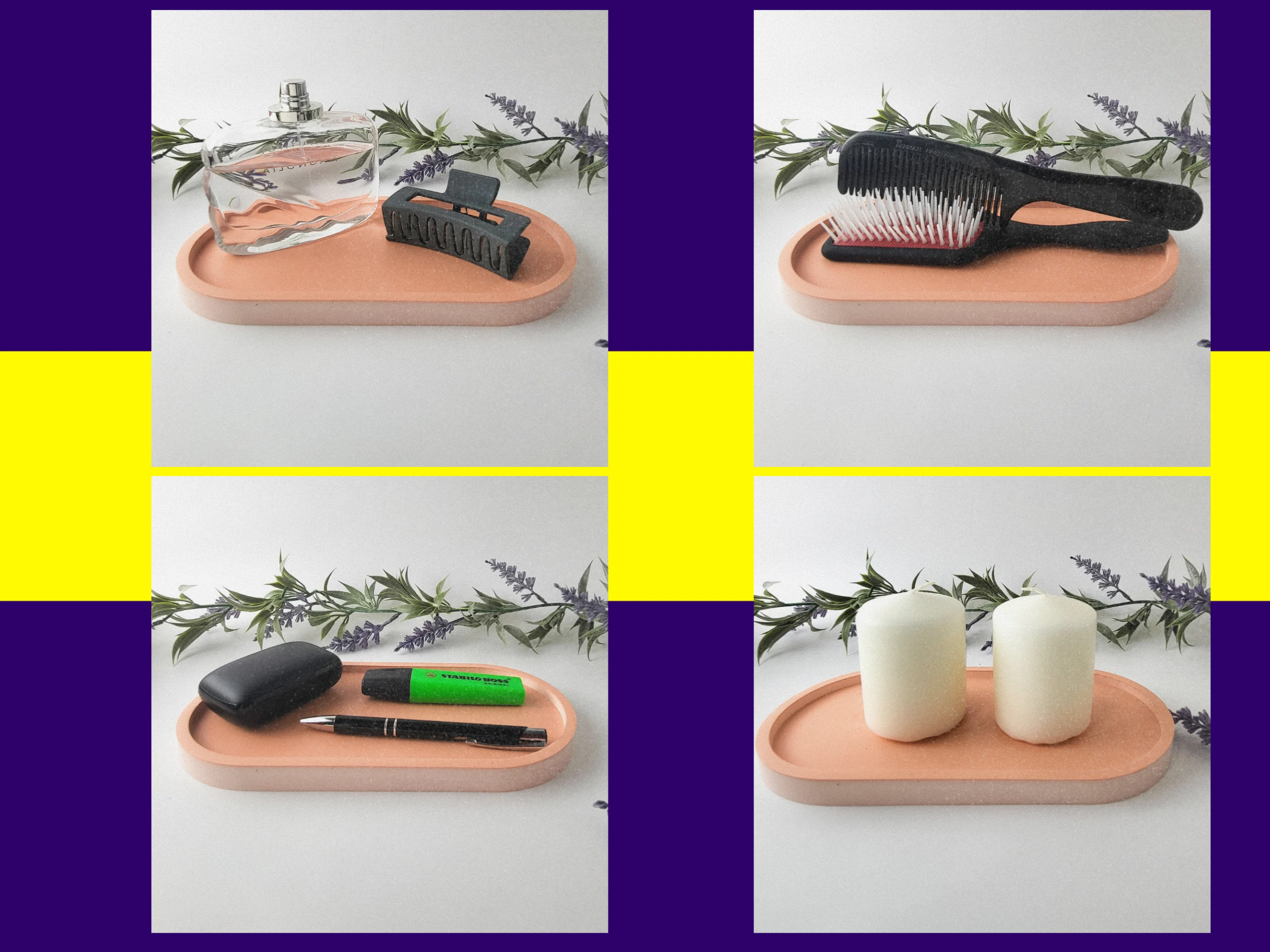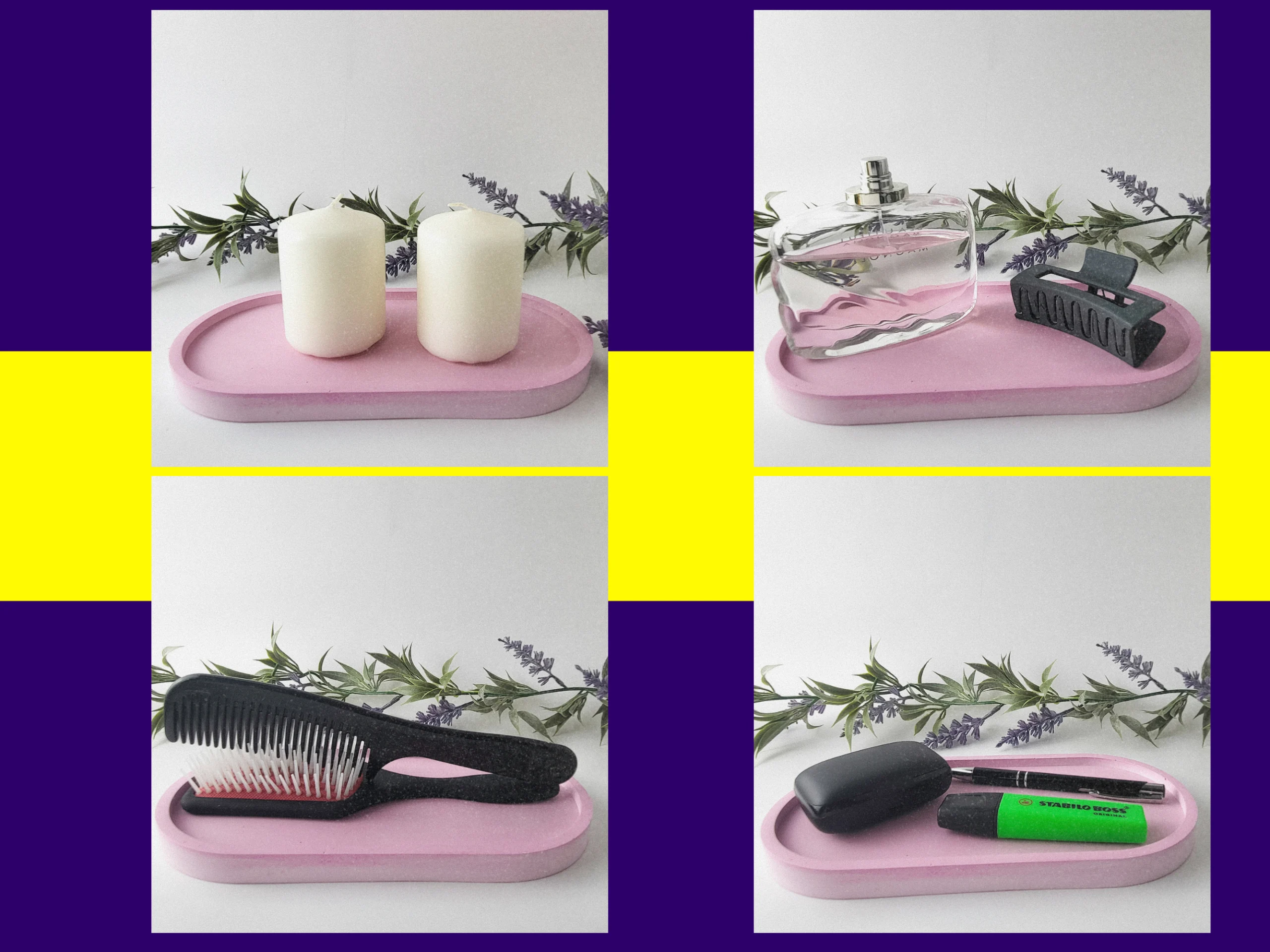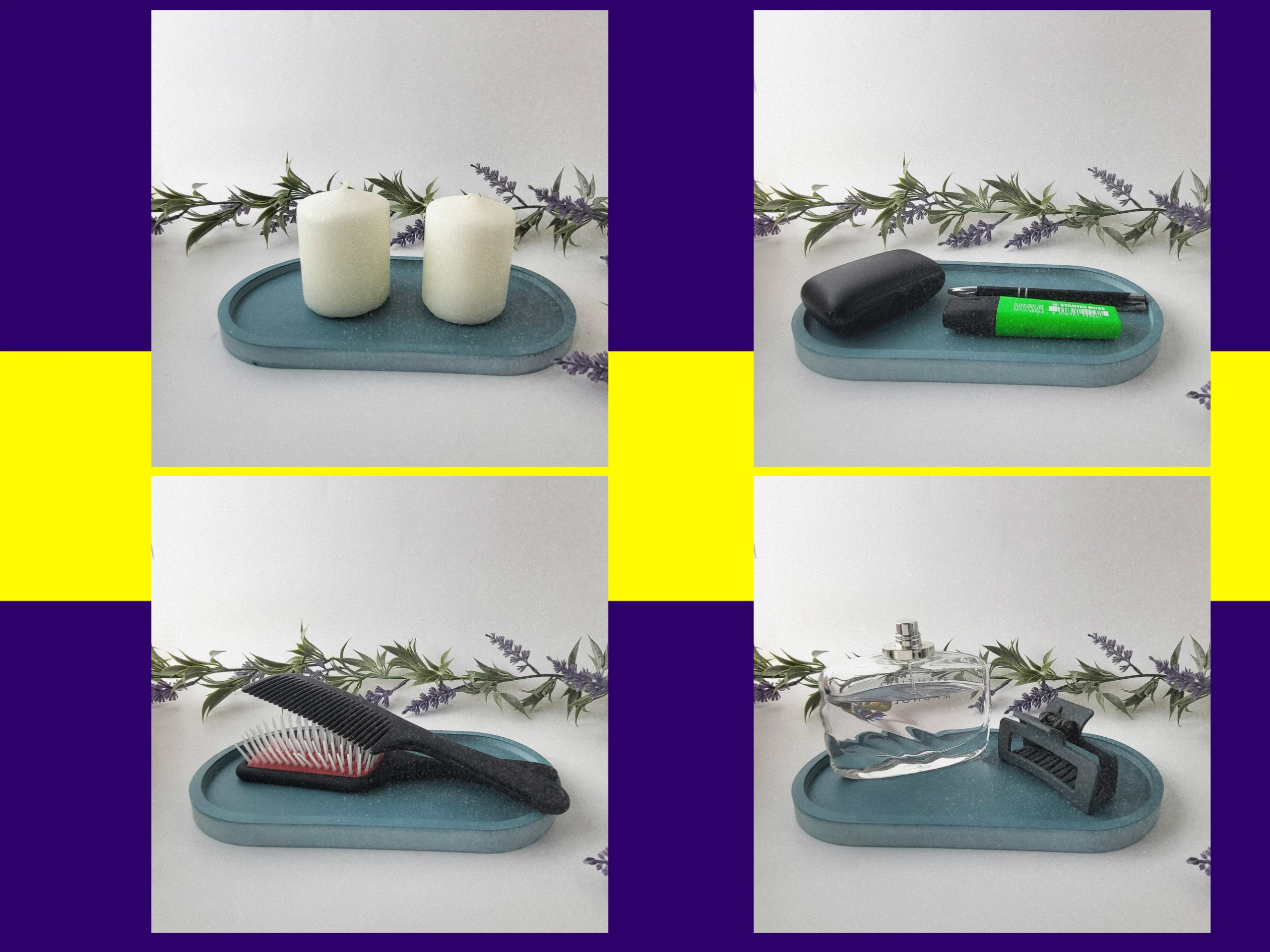 This large oval tray is hand-poured using AquaCast eco resin, sealed for extra protection, and finished with cork feet to stop slips and scratches. Minimal shape, loads of uses: catchall tray, vanity tray, bedside tray, desk organiser, or a simple base for styling bits around the house.