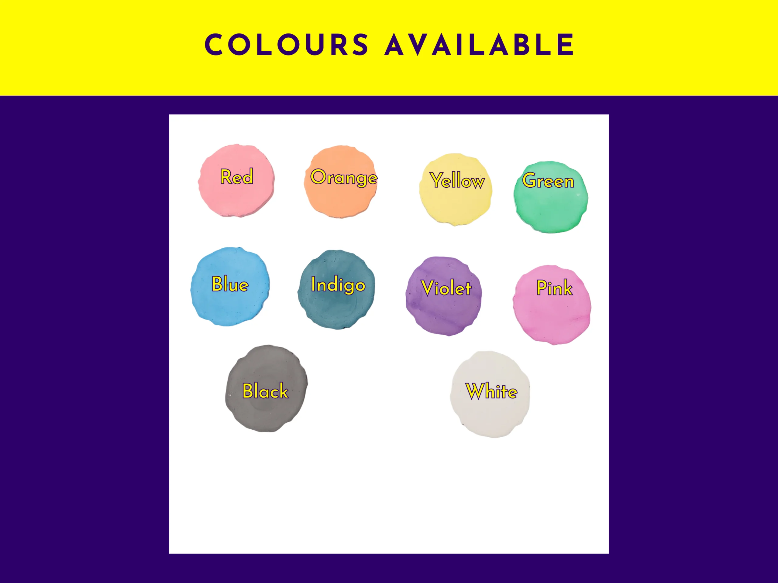 Available colours: red, orange, yellow, green, blue, indigo, violet, pink, black, and white. Also available in small, medium, and extra large.