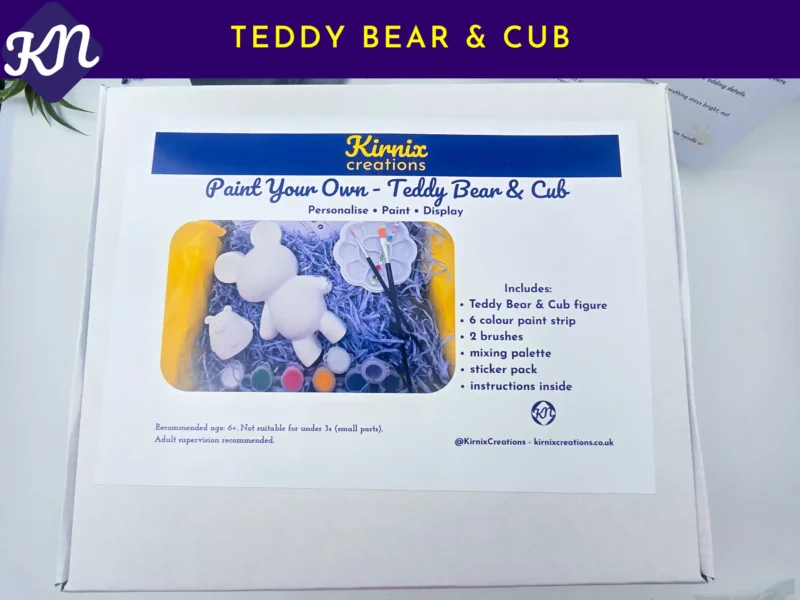 Part of the Kirnix Paint Your Own collection, this teddy bear kit is designed for quiet making, birthday activities, and small gifts with some staying power. The figures arrive blank and ready to paint, so the process is simple and the finished set feels refined rather than rushed.