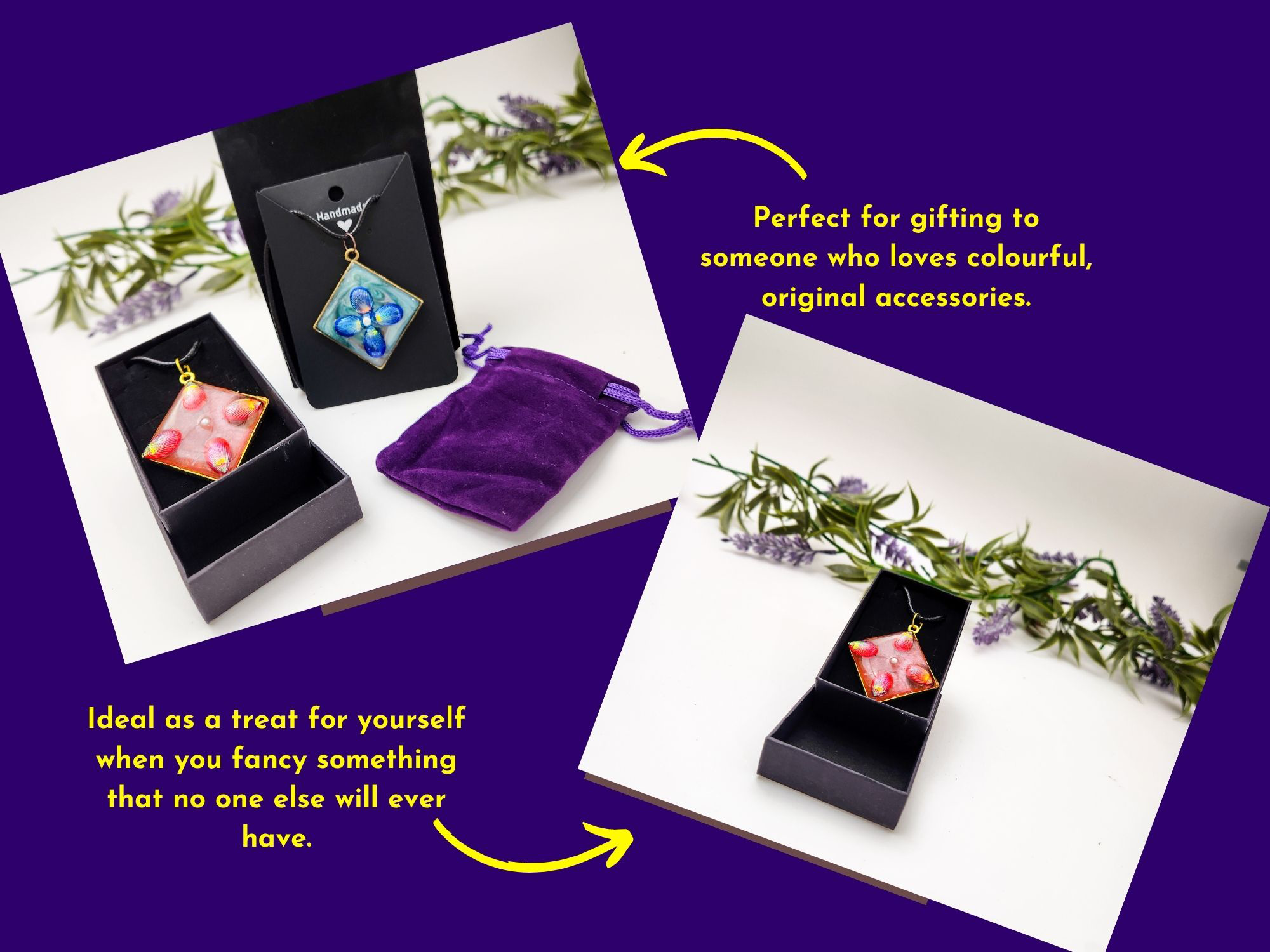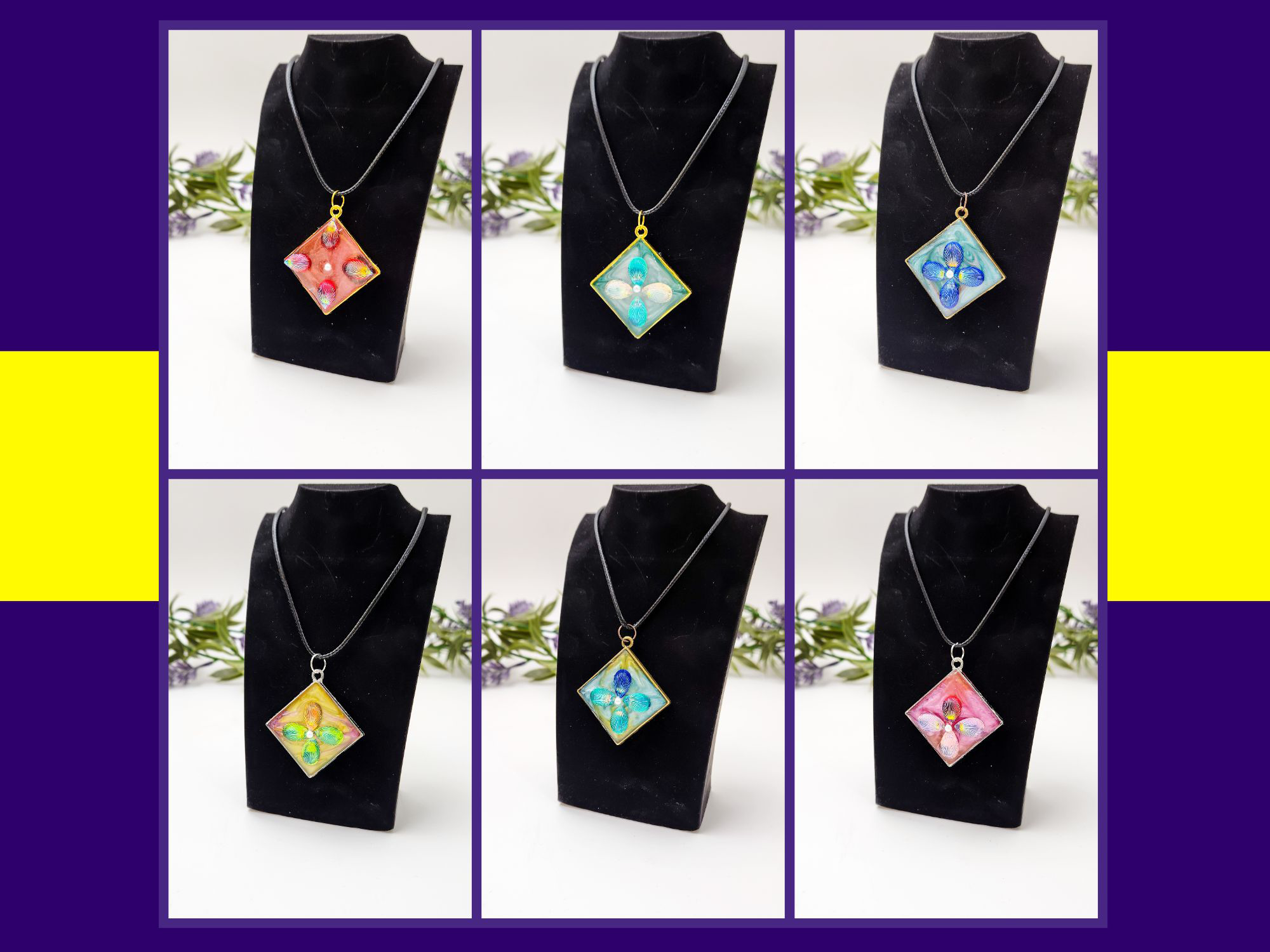 Meet the “One of One” petal pendants — tiny wearable art made with UV resin, with iridescent petal-style details arranged into a four-petal bloom. Each pendant is individually made, so the colours, petal placement, and background swirls will vary (that’s the whole point). You choose the exact one you want from the options shown in the photos.
