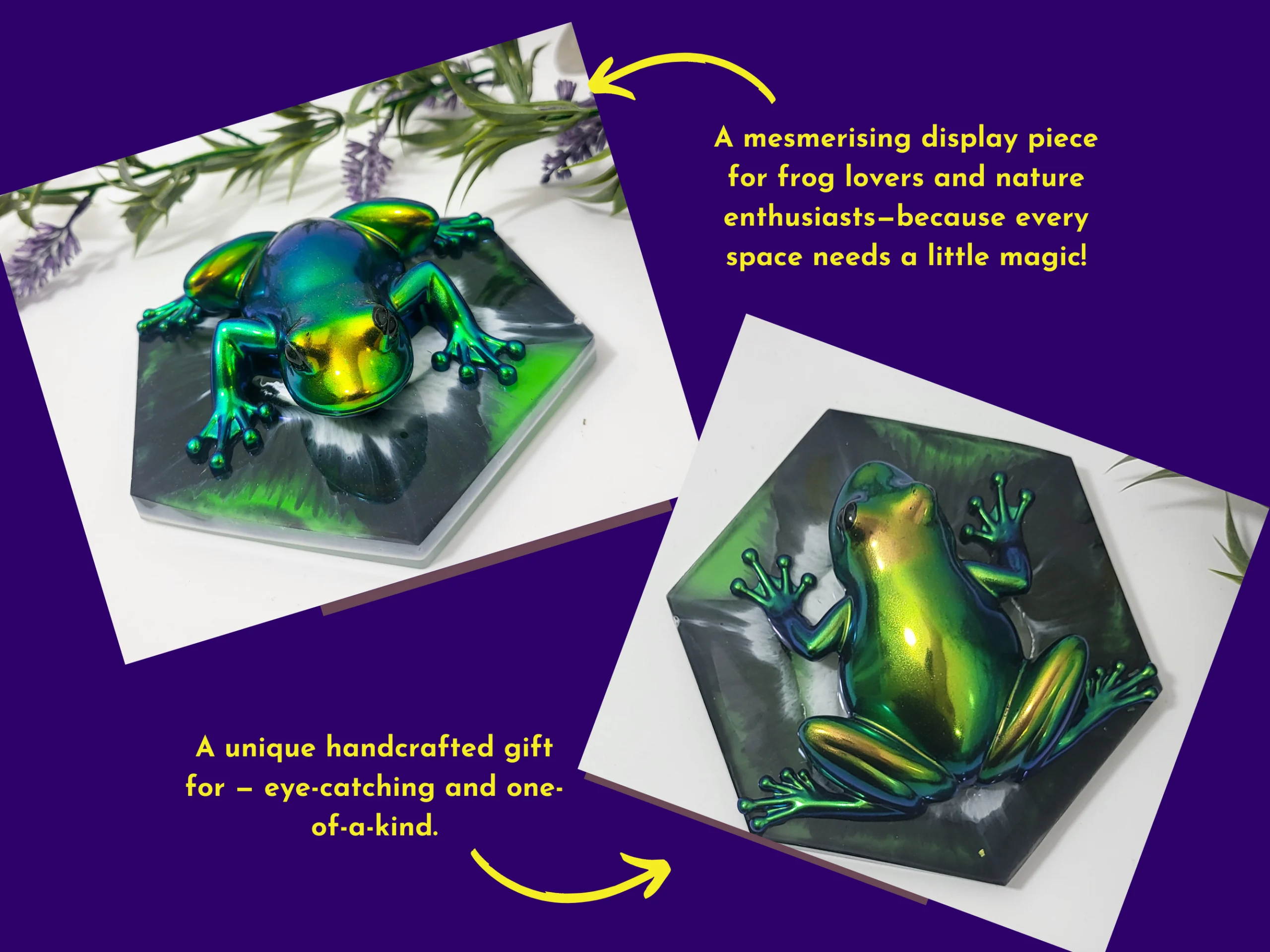 - This frog is handmade using premium resin and a high-grade chrome pigment for its intense colour-shift effect. Every angle reveals a different shade — from bright lime to deep teal, with golden highlights glowing across the back.