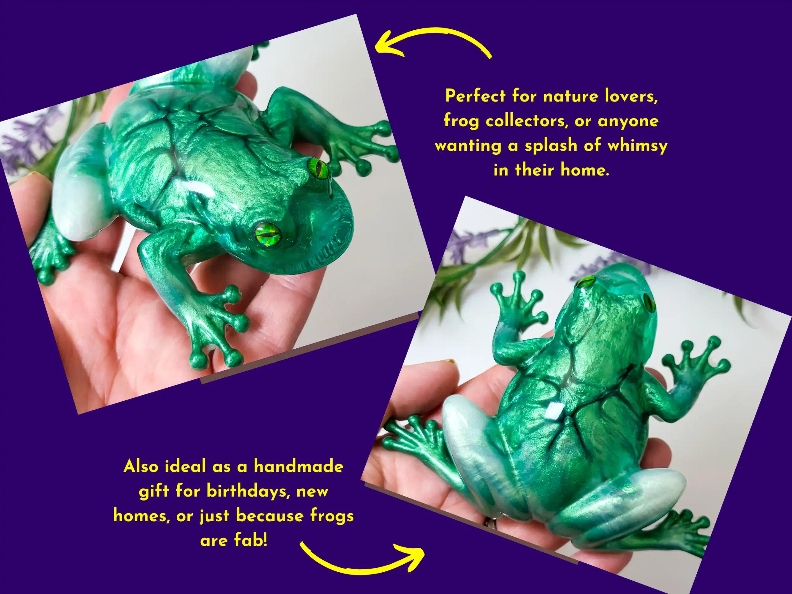 Completely one-of-a-kind — no duplicate frogs exist, and resin will never behave the same way twice.
