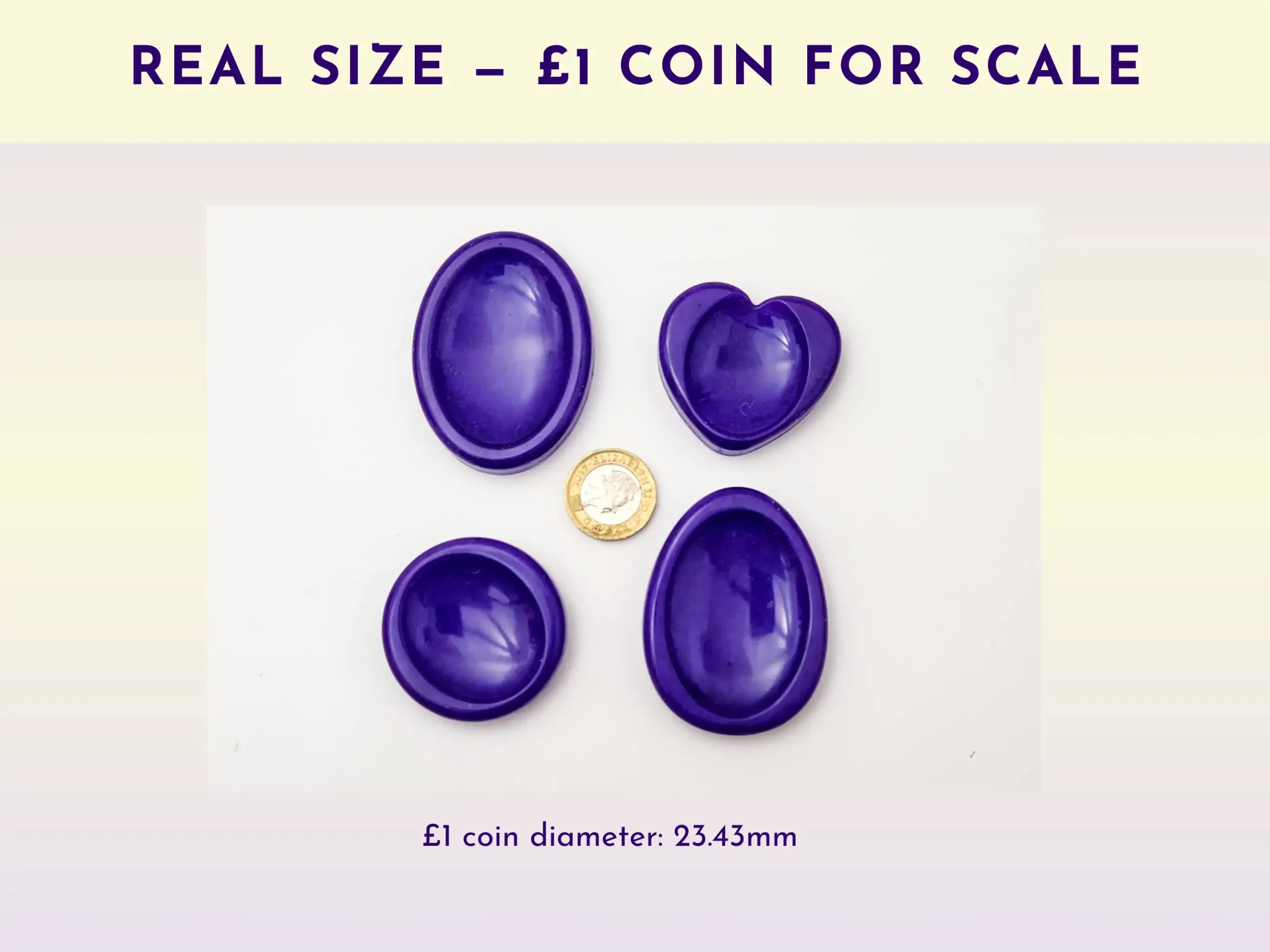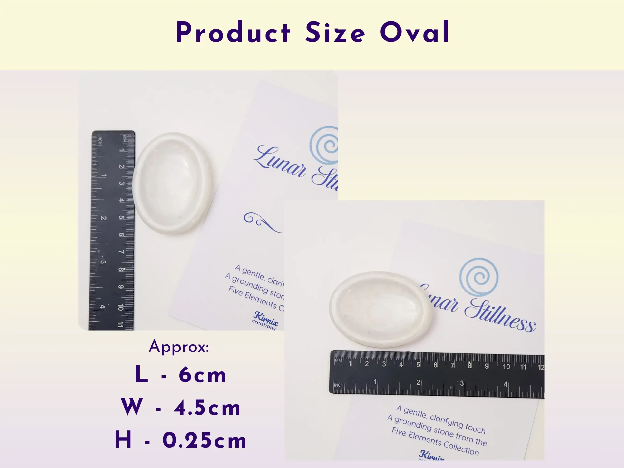 - Oval: approx. 6 cm x 4.5 cm x 0.25 cm