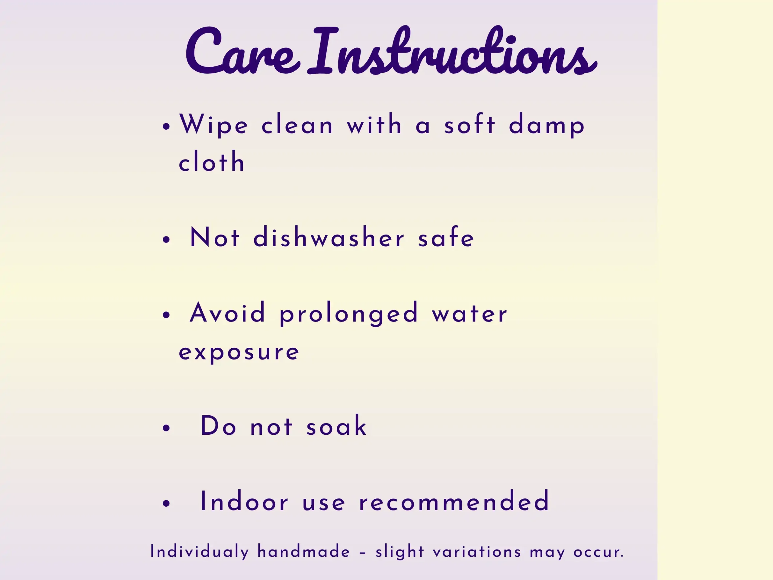 - Handmade pieces will vary slightly in colour, swirl, and finish