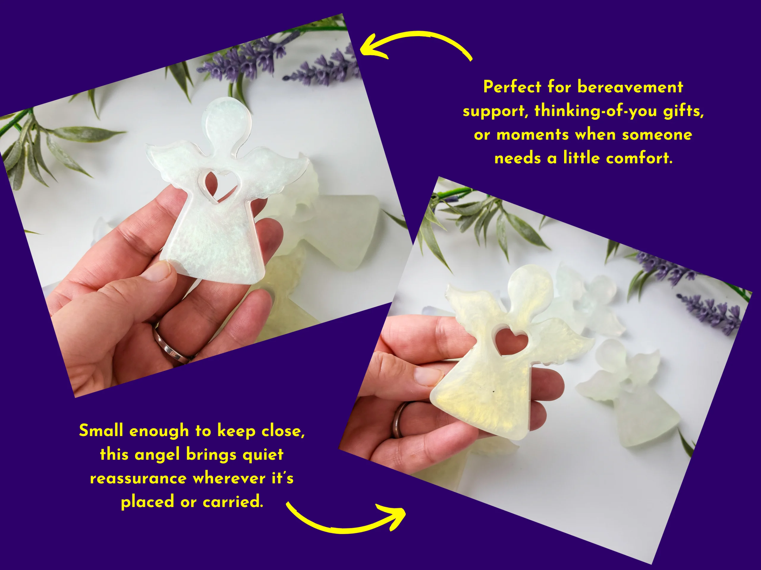 Whether it’s a thoughtful gift for a loved one or a calming keepsake for yourself, this little angel sits perfectly on a bedside table, desk, shelf, or can be slipped into a bag or pocket for a touch of reassurance throughout the day.